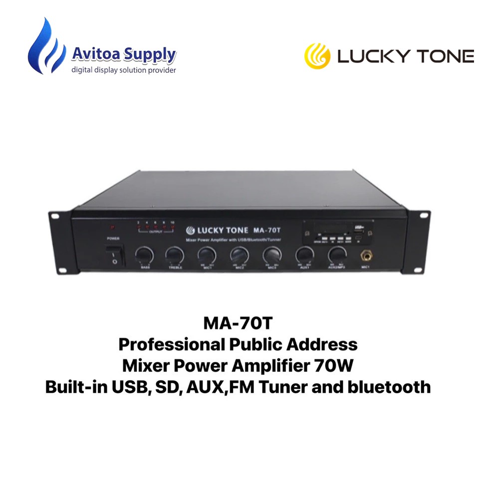 Lucky Tone MA-70T Professional Public Address Mixer Power Amplifier 70W Built-in USB, SD, AUX,FM Tuner and bluetooth