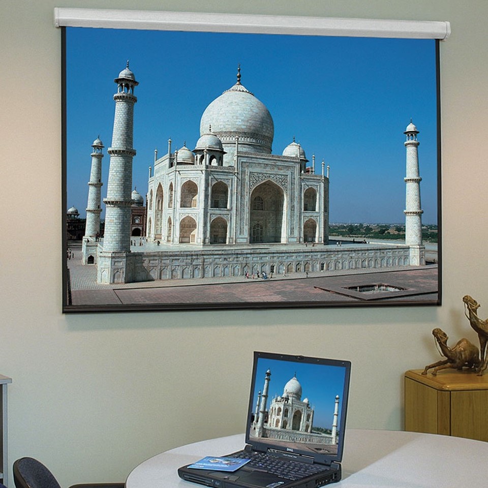 A low-cost hardwired alternative, the popular and affordable Baronet HW electric projection screen features easy installation. The slender pentagonal-shaped steel case with matching endcaps is scratch-resistant and fits into most spaces. Endcaps form universal mounting brackets making installation of the Baronet HW electric projection screen easy, whether mounted on a wall, suspended from, or recessed above the ceiling. This free-hanging, fiberglass-backed projection screen maintains flatness thanks to the weight of the screen and bottom dowel. Motor is housed in an insulated environment to provide smooth, quiet operation.