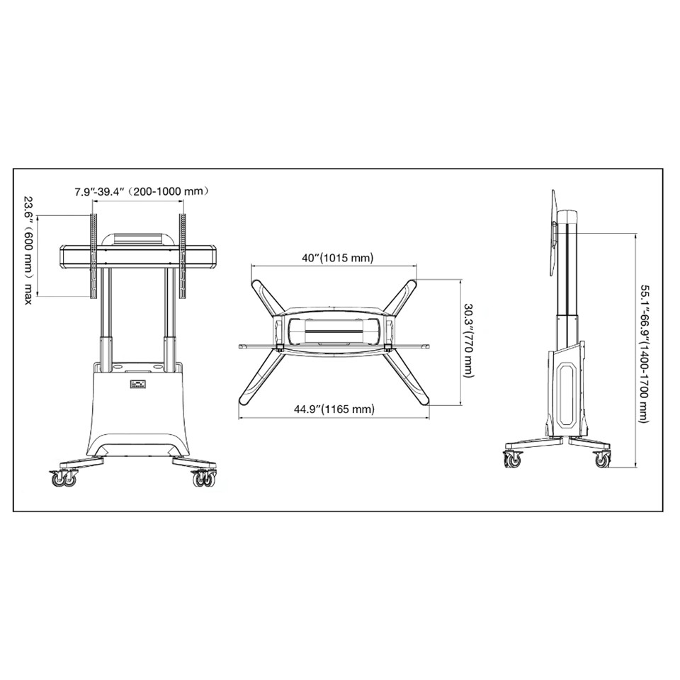 = Height adjustable 1400-1700mm (55.1”-66.9”)