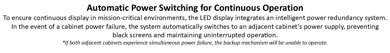 = Smart power redundancy ensures continuous display performance with automatic backup switching