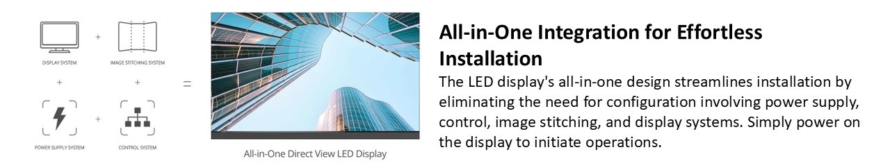 =       All-in-One integration simplifies installation by combining power, control, image stitching, and display