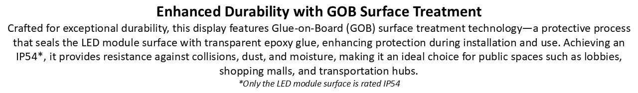 • Anti-collision, dustproof, and moisture-proof with GOB surface treatment