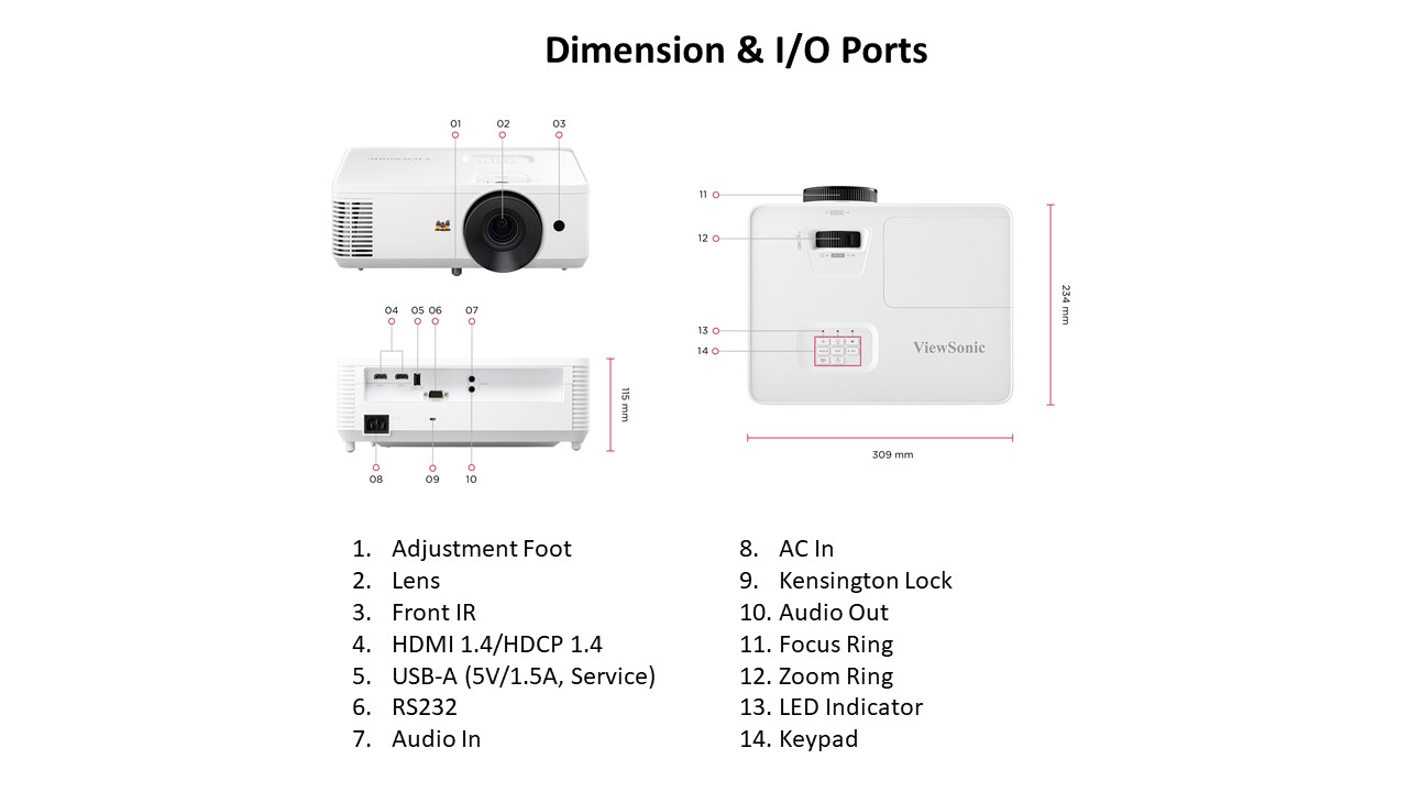 Lamp/Light Source: RLC-129 Air Filter: RSPL Wall/Ceiling Mount: PJ-WMK-007 Carry Bag: PJ-CASE-008 |